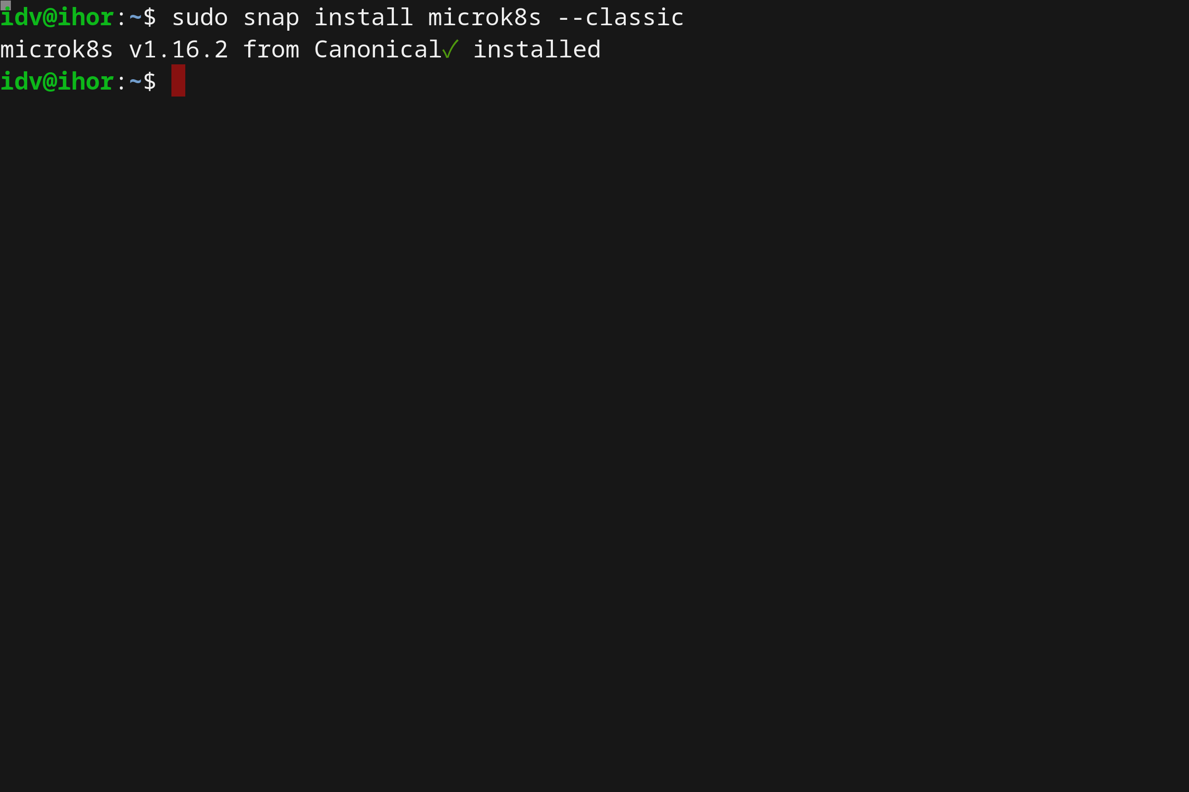 MicroK8s installation is straightforward: